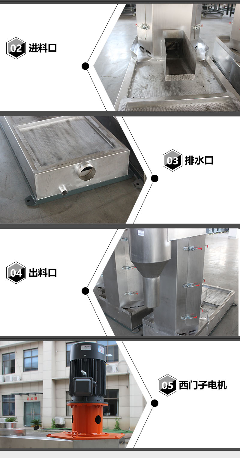 用途:適用于水環切粒后塑料顆粒清洗過后表面水分。 特點: 1:脫水效果好、效率高、使用壽命長。 2:精心設計清理方便。 3:采用不銹鋼,使用壽命長。